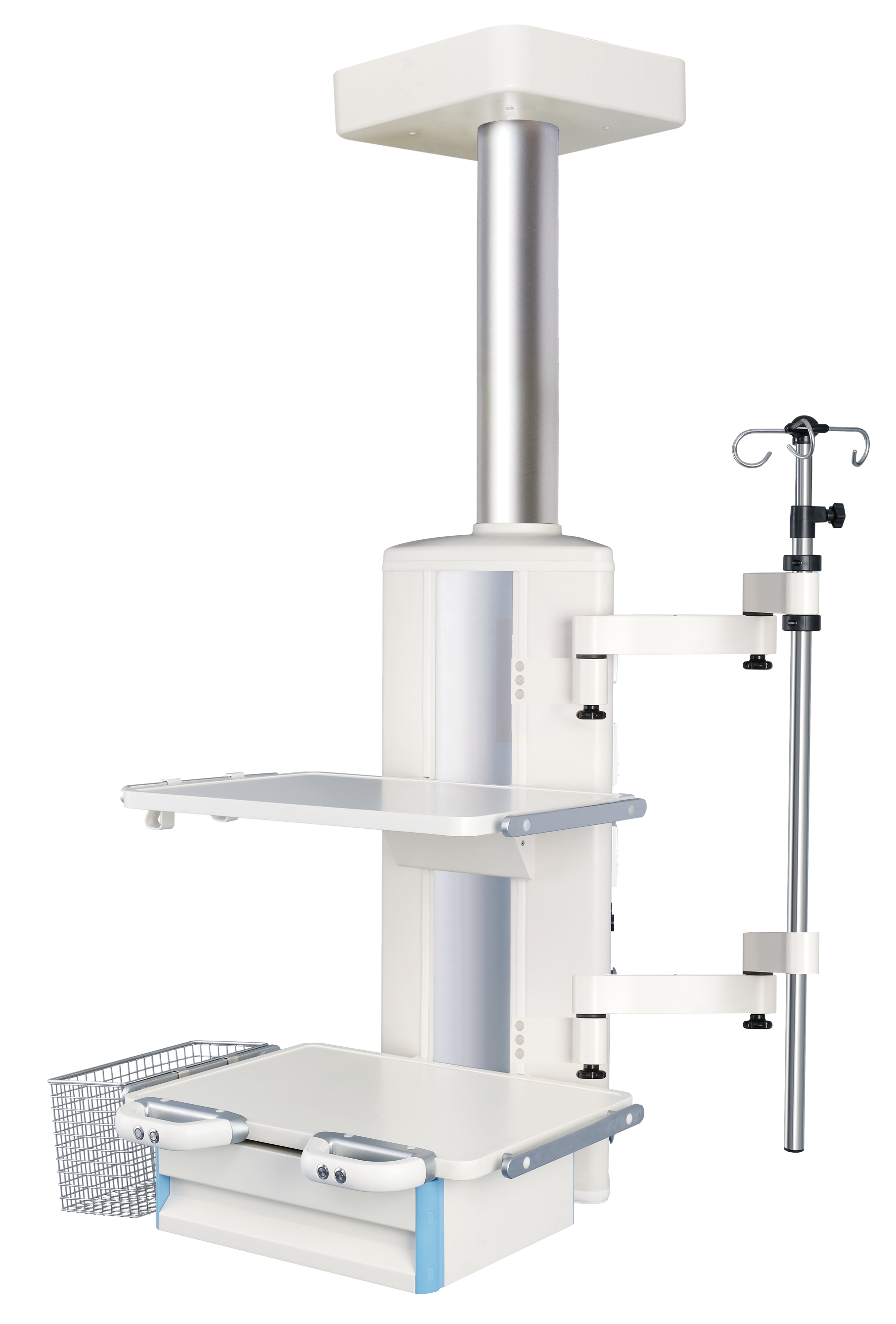 ICU 干濕分離旋臂吊橋 適用于醫院ICU病房,是現代重癥監護病房必備的醫療搶救輔助設備,主要由橋架,干段和濕段組成。其特點在于合理的干濕分離結構,濕段配置升降靈活的輸液架和輸液泵架。干濕段配置有可升降調節的醫療監護儀器平臺,在干濕段上分別將氧氣,空氣,吸引,強弱電,網絡輸入終端配置在醫護人員抬手可及的塔體上。濕段采用懸臂結構,提高了治療空間,移動旋轉部分采用氣控制動防飄移,桁架中央配置一款環保,節能的LED照明治療。為臨床治療提供了照明解決方案,另外還可根據您的要求選配通信傳呼,監控,可視電話